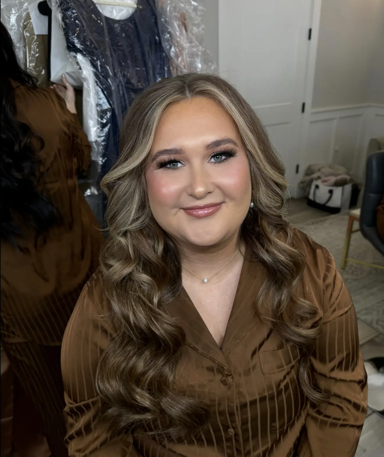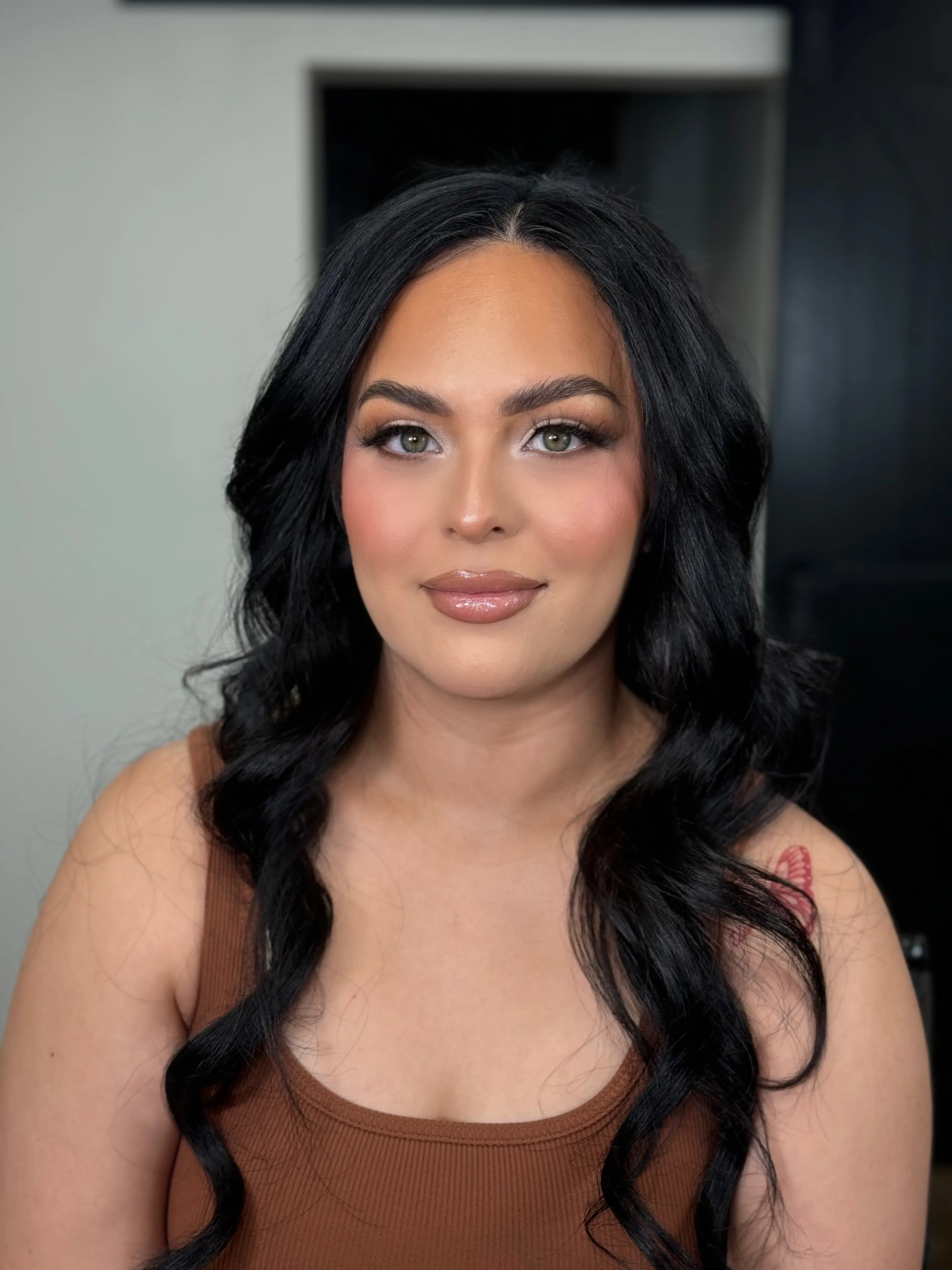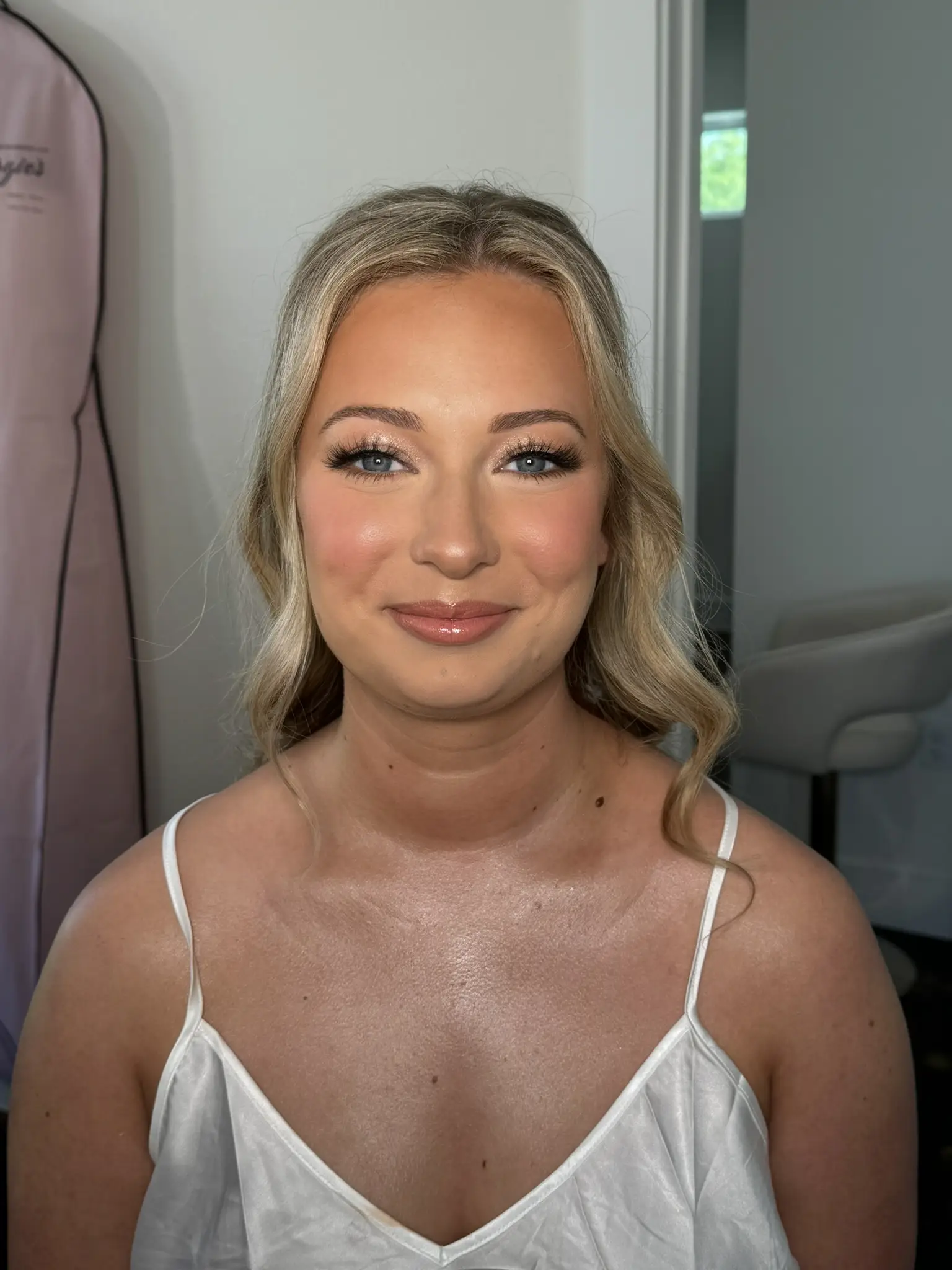 For bridal/weddings Soft glam/Full glam look Lashes are complimentary Includes makeup and hairstyling *blow dry is extra* Styling includes curls, updos may require an extra fee depending on the desired style. Please reach out for an estimate.