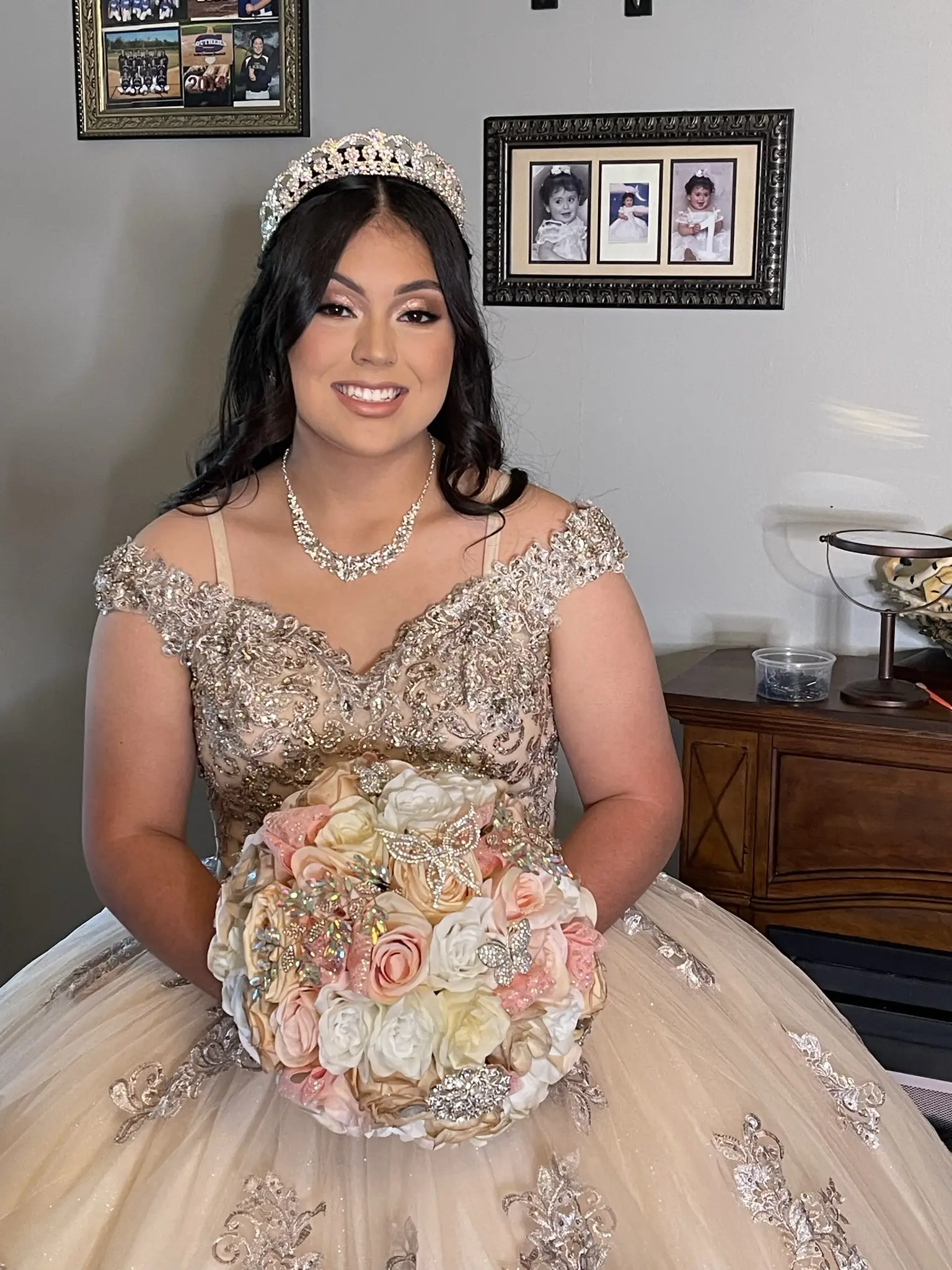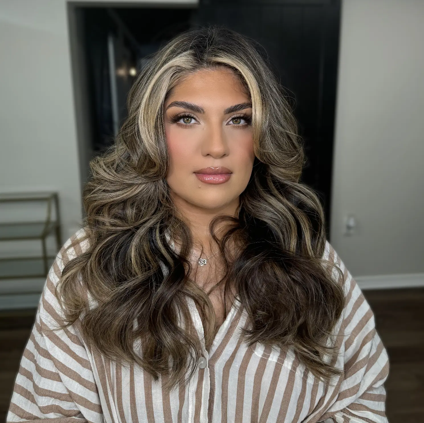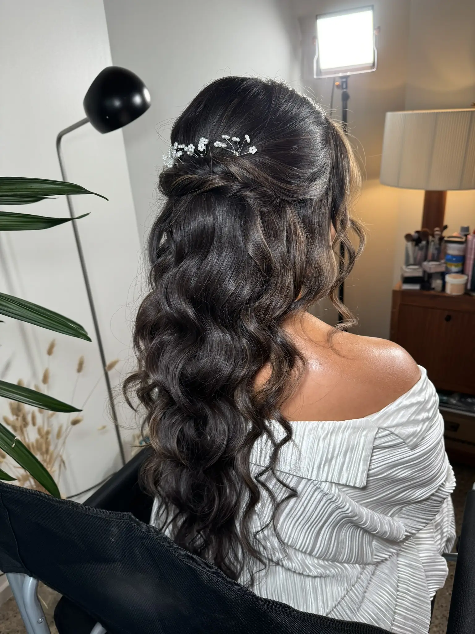 For bridal/weddings Soft glam/Full glam look Lashes are complimentary Includes makeup and hairstyling *blow dry is extra* Styling includes curls, updos may require an extra fee depending on the desired style. Please reach out for an estimate.